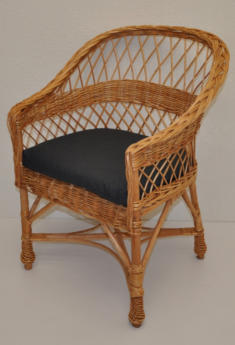 Kreslo San z prírodného vŕbového prútia...... | Konštrukcia kresla San je vyrobená zo silných vŕbových prútov, výplet je z vŕbových prútov. Rozmery stoličky sú 62x63x82 cm. Výška sedadla stoličky je 42 cm. Nosnosť stoličky je 100 kg. Vankúš na stoličku je vyrobený v Českej republike. Vankúš je vyrobený z kvalitnej tkaniny a vyznačuje sa vysokou kvalitou spracovania. Vankúše pre nás vyrába spoločnosť AXIN Cuschions s.r.o., ktorá zamestnáva výlučne miestne vyškolené krajčírky z Českej republiky. Týmto spôsobom sa snažíme podporovať výrobu a zamestnanosť v našej krajine......