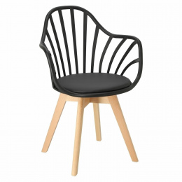 Stolička Sirena sa dokonale hodí do moderného usporiadania, ako jedálenského, tak kancelárskeho, a stane sa jeho vizitkou. Bol vybavený mäkkým vankúšom, potiahnutým čiernou eko kožou, ktorý zabezpečí maximálne pohodlie každému používateľovi. Praktické otvory v operadle dodávajú celku originálny vzhľad, zároveň zabezpečujú zodpovedajúcu úroveň ventilácie. Stolička má podrúčky, ktoré zabezpečujú pohodlnú oporu pre ruky. Základňu stoličky tvoria nohy z bukového dreva, ktoré je trvanlivé a odolné, čo zaručuje používanie po dlhé roky. Umiestnené na nej sedadlo,
