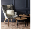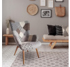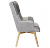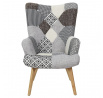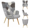 Pohodlné kreslo ušiak v šedej patchworkovej látke je nábytok ako pre pokojný odpočinok, tak pre čítanie kníh alebo dojčenie. Kreslo s nízkym sedákom a hlbokým operadlom zaručuje pokoj a pohodlie. Kreslo na drevených, točených, kaučukových nožičkách v prírodnej farbe sa ideálne hodí do interiérov v modernom, boho, japandi aj škandinávskom štýle. Ozdobná, biela tkanina vyrobená zo 100% polyesteru bola ozdobená geometrickými prešívaniami. Kreslo váži 9 kg. Max. zaťaženie kresla 120 kg. Vyžaduje jednoduchú montáž (priskrutkovanie nôh). Nestohuje sa. Nie je vhodné na vonkajšie použitie. Hrúbka peny na sedadle 28kg/m3. Hrúbka peny na operadle: 24kg/m3
