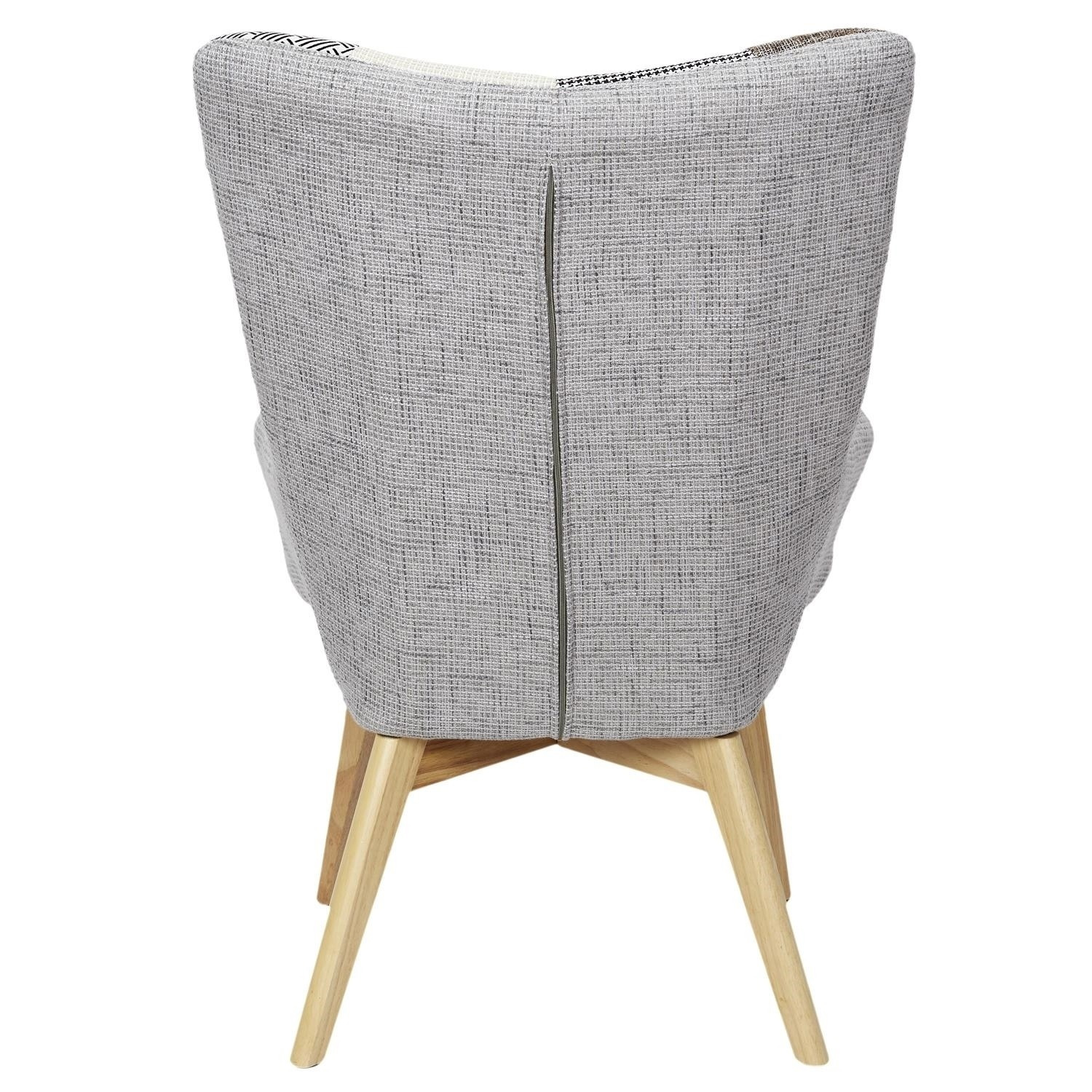 Pohodlné kreslo ušiak v šedej patchworkovej látke je nábytok ako pre pokojný odpočinok, tak pre čítanie kníh alebo dojčenie. Kreslo s nízkym sedákom a hlbokým operadlom zaručuje pokoj a pohodlie. Kreslo na drevených, točených, kaučukových nožičkách v prírodnej farbe sa ideálne hodí do interiérov v modernom, boho, japandi aj škandinávskom štýle. Ozdobná, biela tkanina vyrobená zo 100% polyesteru bola ozdobená geometrickými prešívaniami. Kreslo váži 9 kg. Max. zaťaženie kresla 120 kg. Vyžaduje jednoduchú montáž (priskrutkovanie nôh). Nestohuje sa. Nie je vhodné na vonkajšie použitie. Hrúbka peny na sedadle 28kg/m3. Hrúbka peny na operadle: 24kg/m3