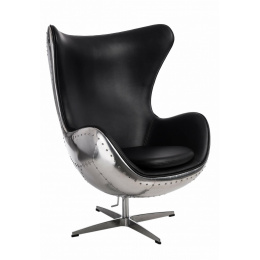 Kreslo Vajce hliníkové čierne PU