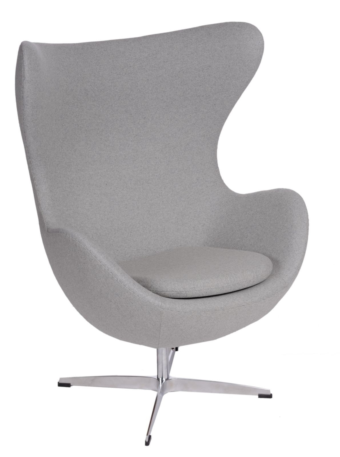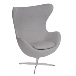 Kreslo Egg je moderné kreslo, ktoré si obľúbili architekti a využívajú ho v dizajnových aranžmánoch súkromných bytov, moderných kancelárií či štýlových hotelov. Forma kresla Vajce bola inšpirovaná jedným z najznámejších dizajnových projektov na svete. Tvorcom kresla Egg je Arne Jacobsen a samotné kreslo bolo navrhnuté pre hotel Radisson SAS v Kodani v roku 1958. Kreslo Vajce bolo vyrobené z kašmírovej vlny (40% vlna, 60% polyester) a chrómovaného kovu. Kreslo je otočné a má tiež funkciu hojdania. Rozmery kartónu: 103cm x 85cm x 65cm Max. množstvo v kartóne: 1