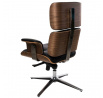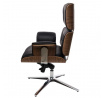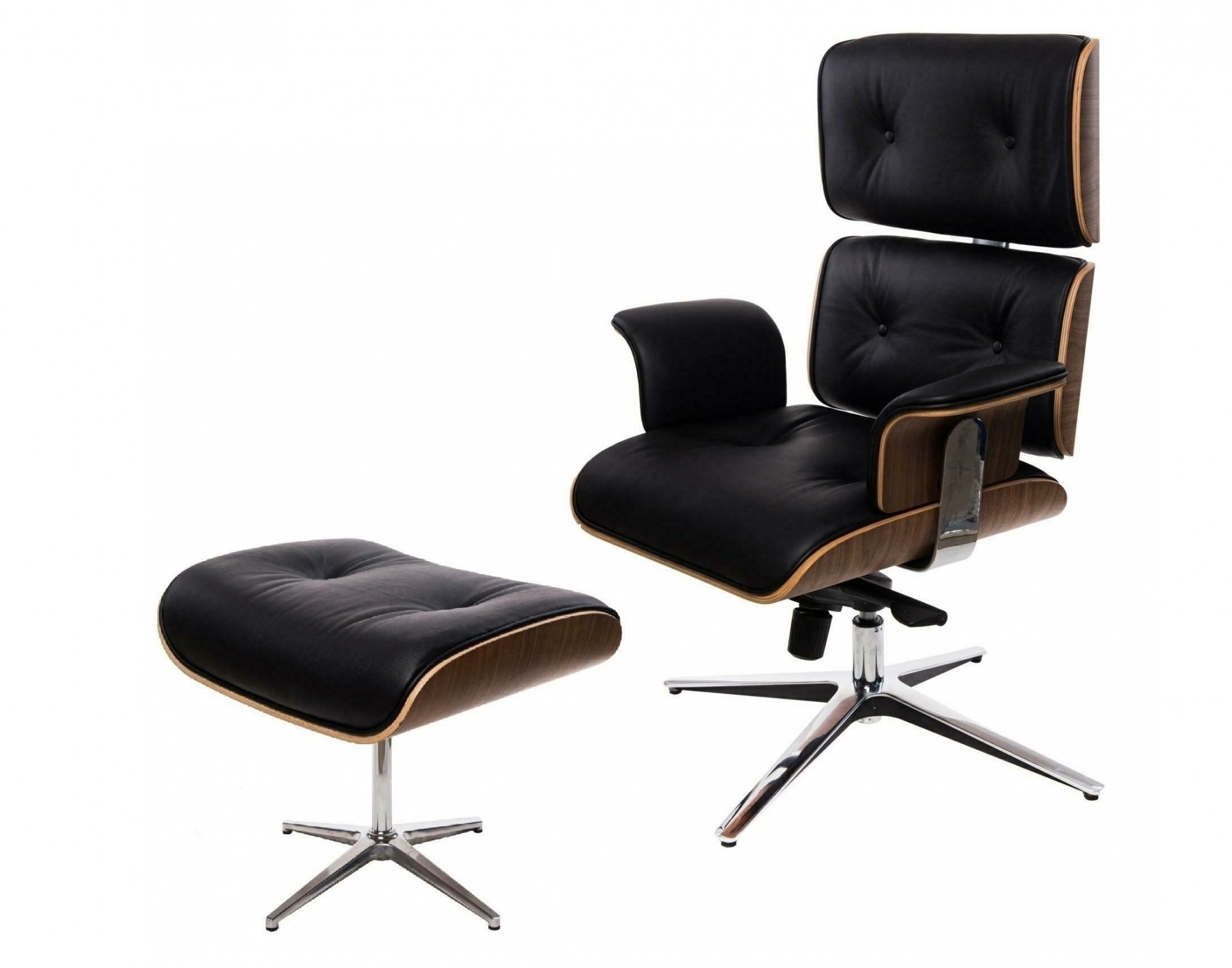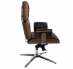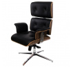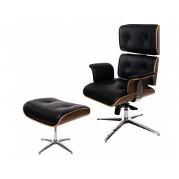 Neobyčajne pohodlné Kreslo VIP Exclusive Home je ideálnym doplnkom štýlovej kancelárie alebo obývacej izby. Ideálne tvarované sedadlo z čiernej prírodnej kože má prešívanie zakončené gombíkmi potiahnutými rovnakou látkou. Zadná časť a spodná časť sedadla sú vyrobené z tvarovanej preglejky, ktorá dodáva kreslu nadpriemerný tvar. Pohodlným doplnkom sú podrúčky vo výške 18 cm od sedadla. Sedák kresla je umiestnený na kovovej chrómovanej základni s 5 nohami. Kreslo má nastaviteľnú výšku a uhol sklonu. Kreslo dokonale ladí s podnožkou z rovnakej série. Podnožka má ideálne tvarované sedadlo z čiernej kože s prešívaním zakončeným gombíkmi potiahnutými rovnakou látkou. Spodná časť sedadla je vyrobená z tvarovanej preglejky, ktorá dodáva podnožke elegantný tvar. Podnožka bola umiestnená na kovovej chrómovanej základni so 4 nohami. Maximálne zaťaženie kresla je 120 kg, maximálne zaťaženie podnožky: 120 kg Výška: 108/115