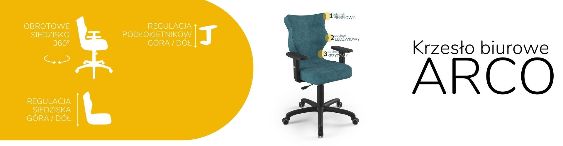 Prezentovaná čalúnená kancelárska stolička je navyše vybavená súpravou piatich mäkkých otočných koliesok. Model kancelárskej stoličky na kolieskach umožňuje plynulý pohyb v akomkoľvek smere. Vďaka svojej konštrukcii umožňuje stolička Arco voľný pohyb na tvrdých podlahách aj na mäkkých kobercoch či rohožiach. Vďaka robustnej konštrukcii, pohodlnému sedadlu, mnohým možnostiam nastavenia a mnohým estetickým prvkom je kancelárska stolička Arco ideálnou voľbou. Je ideálnym riešením pre moderné kancelárske priestory aj intímne domáce pracovne. Za zmienku stojí aj to, že prezentovaná kancelárska stolička bola navrhnutá a kompletne vyrobená v Poľsku, čo dodatočne svedčí o vysokej kvalite spracovania.