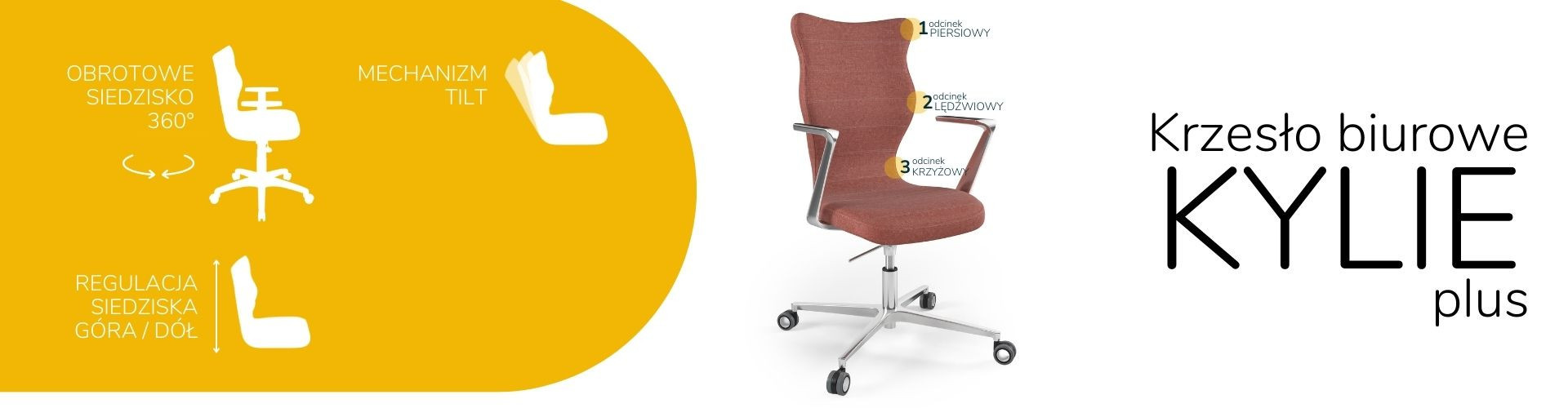 Moderná stolička Kylie je praktickým a elegantným riešením prispôsobeným potrebám modernej kancelárie. Pri dlhej práci v sede sú veľmi dôležité správne podmienky. Optimálne držanie tela je úplne zásadné, ale dôležité sú aj otázky, ako je vzdialenosť od monitora a časté zmeny polohy. Kancelárska stolička Kylie, ktorú ponúkame, vám umožní efektívne sa postarať o všetky tri aspekty naraz. Tým sa zvyšuje naša výkonnosť a výrazne sa znižujú negatívne účinky sedavého zamestnania.
