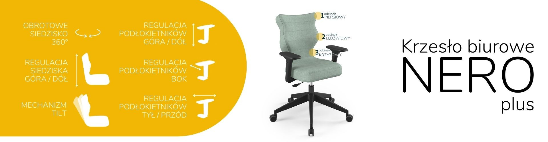 Otočná kancelárska stolička Nero Plus je pohodlný model, ktorý sa určite osvedčí pri každodenných úlohách pri pracovnom stole. Tento výrobok je plne ergonomický - bol navrhnutý tak, aby vám pomohol udržať správne držanie tela. stolička Nero Plus, ktorá je v našej ponuke, bola vyrobená pod značkou Entelo. Jedná sa o exemplár navrhnutý a vyrobený v Poľsku, ktorý si plne zaslúži hrdý názov "made in Poland". Široký výber farieb čalúnenia vám umožní vybrať si dokonalé kreslo, ktoré sa hodí do každého interiéru. Kancelárska stolička Nero Plus - pohodlie, odolnosť a bezpečnosť.