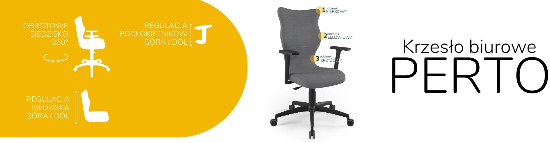 Sedák a operadlo kancelárskej stoličky Perto sú navyše špeciálne tvarované podľa prirodzeného tvaru chrbtice. Keď zaujmeme polohu pri počítači, prenáša sa väčšina váhy z chrbtice na stoličku. Tento mechanizmus je dôležitý najmä pri dlhej pracovnej dobe, keď nemáme možnosť urobiť si prestávku a "pretiahnuť" si končatiny. Kancelárska stolička Perto nás prirodzene vyzýva k správnemu držaniu tela. To určite zabezpečí, že nebudeme vystavení negatívnym účinkom sedavého zamestnania, ktorému čelí mnoho kancelárskych pracovníkov.