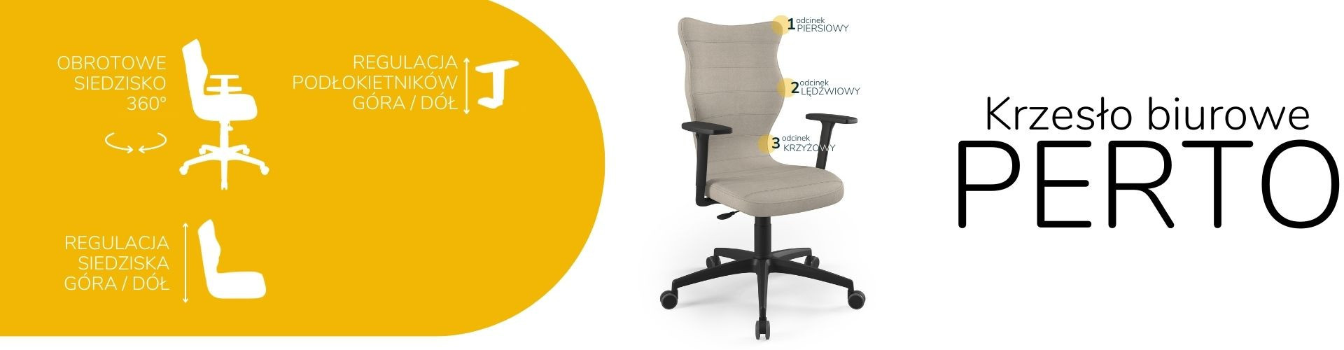 Moderná stolička Perto Black je praktické a elegantné riešenie prispôsobené potrebám modernej kancelárie. Pri dlhej práci v sede sú veľmi dôležité správne podmienky. Optimálne držanie tela je úplne zásadné, ale dôležité sú aj otázky, ako je vzdialenosť od monitora a časté zmeny polohy. Čierna kancelárska stolička Perto, ktorú ponúkame, vám umožní efektívne sa postarať o všetky tri aspekty naraz. Tým sa zvyšuje naša výkonnosť a výrazne sa znižujú negatívne účinky sedavého zamestnania. Kancelárska stolička na kolieskach tiež rieši organizačné problémy spojené s usporiadaním a zmenou usporiadania priestoru v kancelárii. Môžeme ich ľahko premiestniť alebo presunúť do nižšieho či vyššieho poschodia. Nebude nás to stáť príliš veľa úsilia, pretože čierna kancelárska stolička, ktorú sme navrhli, je veľmi ľahká.