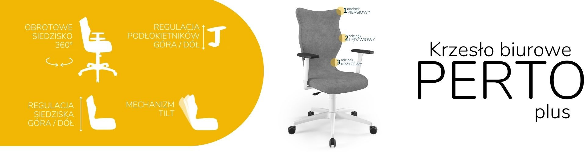 Moderná stolička Perto Plus Chair Black je praktické a elegantné riešenie prispôsobené potrebám modernej kancelárie. Pri dlhej práci v sede sú veľmi dôležité správne podmienky. Optimálne držanie tela je úplne zásadné, ale dôležité sú aj otázky, ako je vzdialenosť od monitora a časté zmeny polohy. Biela kancelárska stolička Perto Plus, ktorú ponúkame, vám umožní efektívne sa postarať o všetky tri aspekty naraz. Tým sa zvyšuje naša výkonnosť a výrazne sa znižujú negatívne účinky sedavého zamestnania. Kancelárska stolička na kolieskach tiež rieši organizačné problémy spojené s usporiadaním a zmenou usporiadania priestoru v kancelárii. Môžeme ich ľahko premiestniť alebo presunúť do nižšieho či vyššieho poschodia. Nebude nás to stáť príliš veľa úsilia, pretože biela kancelárska stolička, ktorú sme navrhli, je veľmi ľahká.