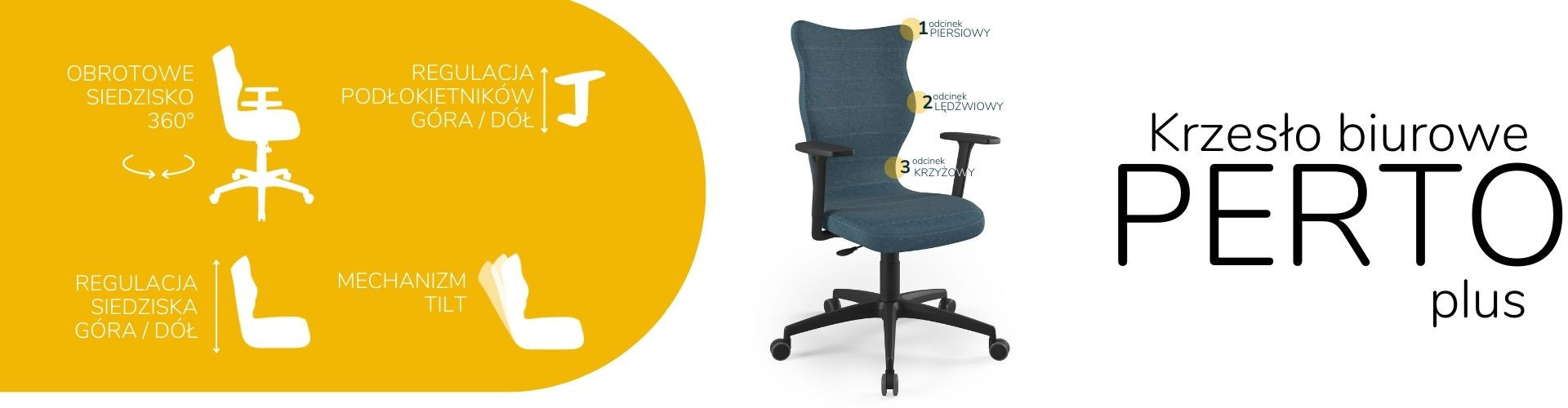 Moderná stolička Perto Plus Chair Black je praktické a elegantné riešenie prispôsobené potrebám modernej kancelárie. Pri dlhej práci v sede sú veľmi dôležité správne podmienky. Optimálne držanie tela je úplne zásadné, ale dôležité sú aj otázky, ako je vzdialenosť od monitora a časté zmeny polohy. Čierna kancelárska stolička Perto Plus, ktorú ponúkame, vám umožní efektívne sa postarať o všetky tri aspekty naraz. Tým sa zvyšuje naša výkonnosť a výrazne sa znižujú negatívne účinky sedavého zamestnania. Kancelárska stolička na kolieskach tiež rieši organizačné problémy spojené s usporiadaním a zmenou usporiadania priestoru v kancelárii. Môžeme ich ľahko premiestniť alebo presunúť do nižšieho či vyššieho poschodia. Nebude nás to stáť príliš veľa úsilia, pretože čierna kancelárska stolička, ktorú sme navrhli, je veľmi ľahká.