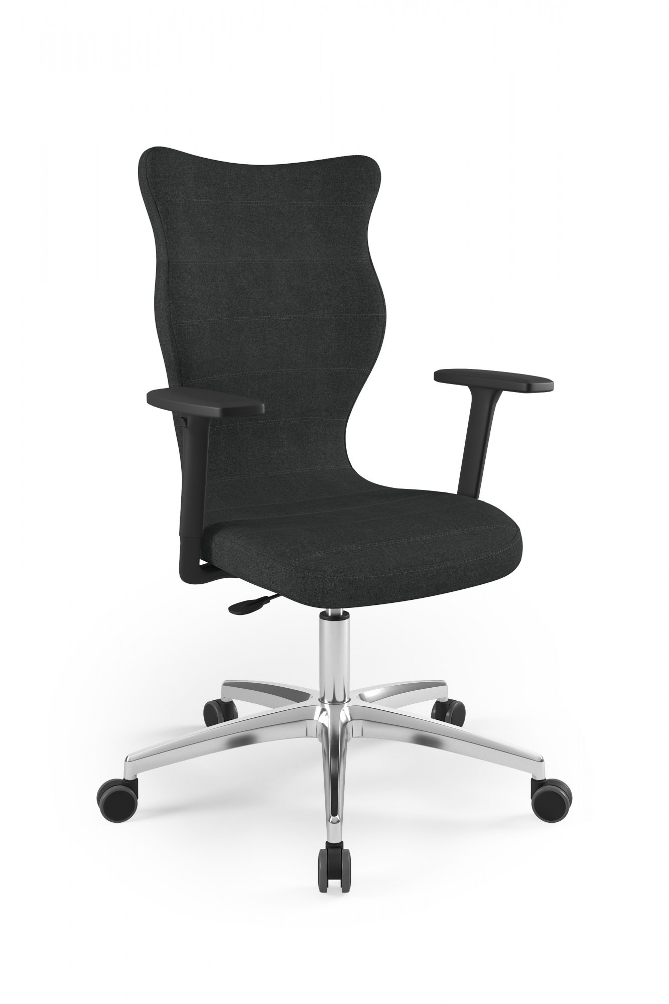 Moderná stolička Perto Plus Chair Black je praktické a elegantné riešenie prispôsobené potrebám modernej kancelárie. Pri dlhej práci v sede sú veľmi dôležité správne podmienky. Optimálne držanie tela je úplne zásadné, ale dôležité sú aj otázky, ako je vzdialenosť od monitora a časté zmeny polohy. Kancelárska stolička Perto Plus s leštenou podnožou, ktorú ponúkame, vám umožní efektívne sa postarať o všetky tri aspekty naraz. Tým sa zvyšuje naša výkonnosť a výrazne sa znižujú negatívne účinky sedavého zamestnania. Kancelárska stolička na kolieskach tiež rieši organizačné problémy spojené s usporiadaním a zmenou usporiadania priestoru v kancelárii. Môžeme ich ľahko premiestniť alebo presunúť do nižšieho či vyššieho poschodia. Nebude nás to stáť príliš veľa úsilia, pretože nami navrhnutá leštená kancelárska stolička je veľmi ľahká.