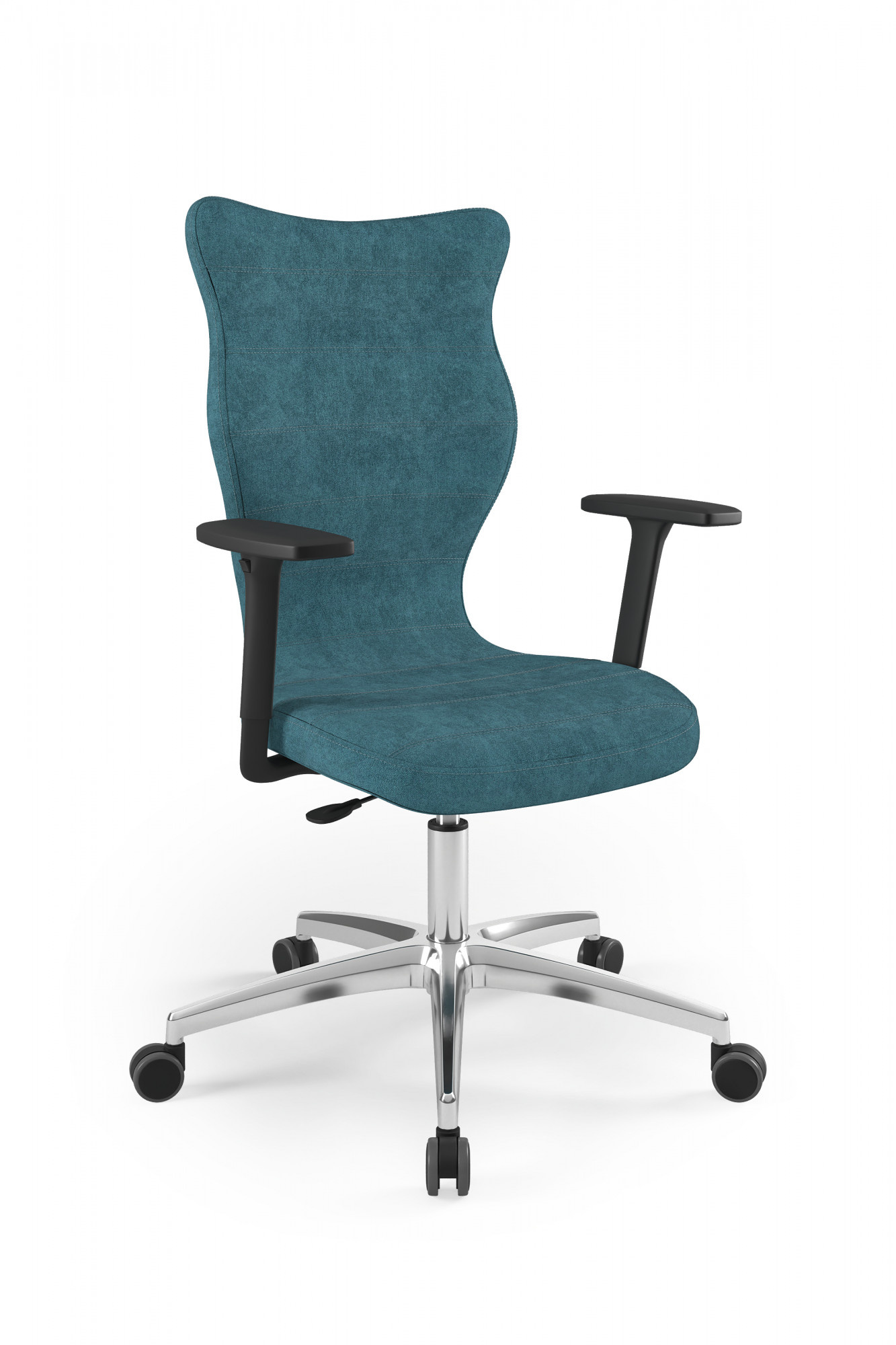 Moderná stolička Perto Black je praktické a elegantné riešenie prispôsobené potrebám modernej kancelárie. Pri dlhej práci v sede sú veľmi dôležité správne podmienky. Optimálne držanie tela je úplne zásadné, ale dôležité sú aj otázky, ako je vzdialenosť od monitora a časté zmeny polohy. Kancelárska stolička Perto s leštenou podnožou, ktorú ponúkame, vám umožní efektívne sa postarať o všetky tri aspekty naraz. Tým sa zvyšuje naša výkonnosť a výrazne sa znižujú negatívne účinky sedavého zamestnania. Kancelárska stolička na kolieskach tiež rieši organizačné problémy spojené s usporiadaním a zmenou usporiadania priestoru v kancelárii. Môžeme ich ľahko premiestniť alebo presunúť do nižšieho či vyššieho poschodia. Nebude nás to stáť príliš veľa úsilia, pretože nami navrhnutá leštená kancelárska stolička je veľmi ľahká.