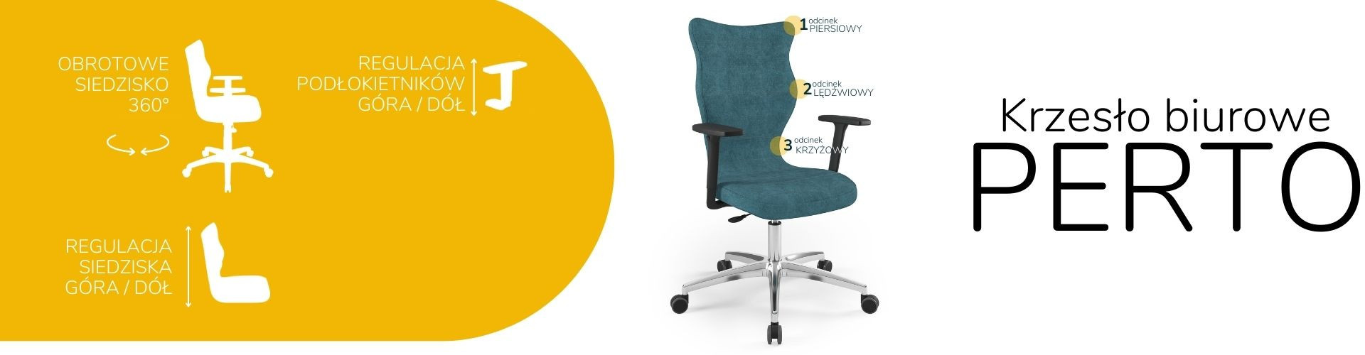Sedák a operadlo kancelárskej stoličky Perto sú navyše špeciálne tvarované podľa prirodzeného tvaru chrbtice. Keď zaujmeme polohu pri počítači, prenáša sa väčšina váhy z chrbtice na stoličku. Tento mechanizmus je dôležitý najmä pri dlhej pracovnej dobe, keď nemáme možnosť urobiť si prestávku a "pretiahnuť" si končatiny. Kancelárska stolička Perto nás prirodzene vyzýva k správnemu držaniu tela. To určite zabezpečí, že nebudeme vystavení negatívnym účinkom sedavého zamestnania, ktorému čelí mnoho kancelárskych pracovníkov.