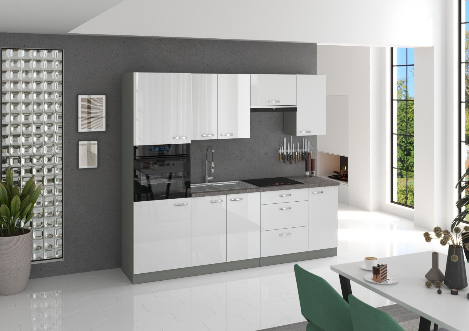 - Kuchyňa ASPEN - Biela/Šedý Lesk