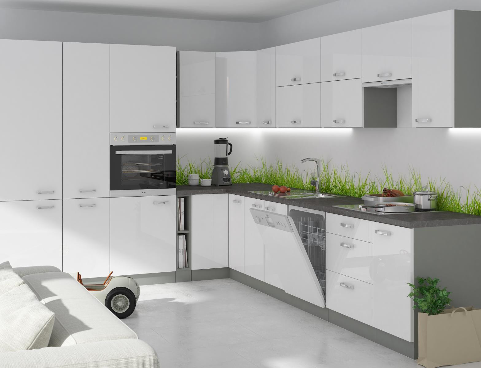 - Kuchyňa BIANCA - Sivá/Biely Lesk