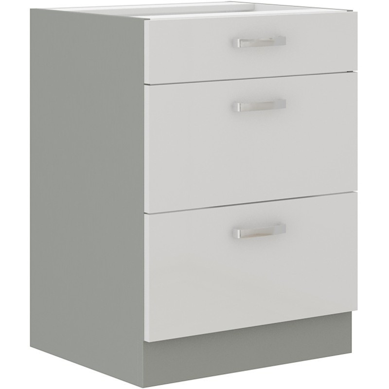 Kuchynská dolná skrinka BOLZANO 60 D 3S BB, Biely lesk/Sivá