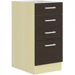 Kuchynská skrinka Christo 40D4S so 4 zásuvkami je vyrobená zo 16 mm hrubého lamina v odtieni dub ferrara a tmavé legno. Rukoväte sú plastové a sú zahrnuté v cene. Vyberte si z našej ponuky skriniek a vytvorte si kuchyňu podľa svojich potrieb. Môže byť rohový, rovný, krátky alebo dlhý. Predstavivosti sa medze nekladú. Skrinka sa dodáva v demontovanom stave bez pracovnej dosky. montážny plán vrátane všetkých potrebných spojovacích prvkov je súčasťou balenia.
