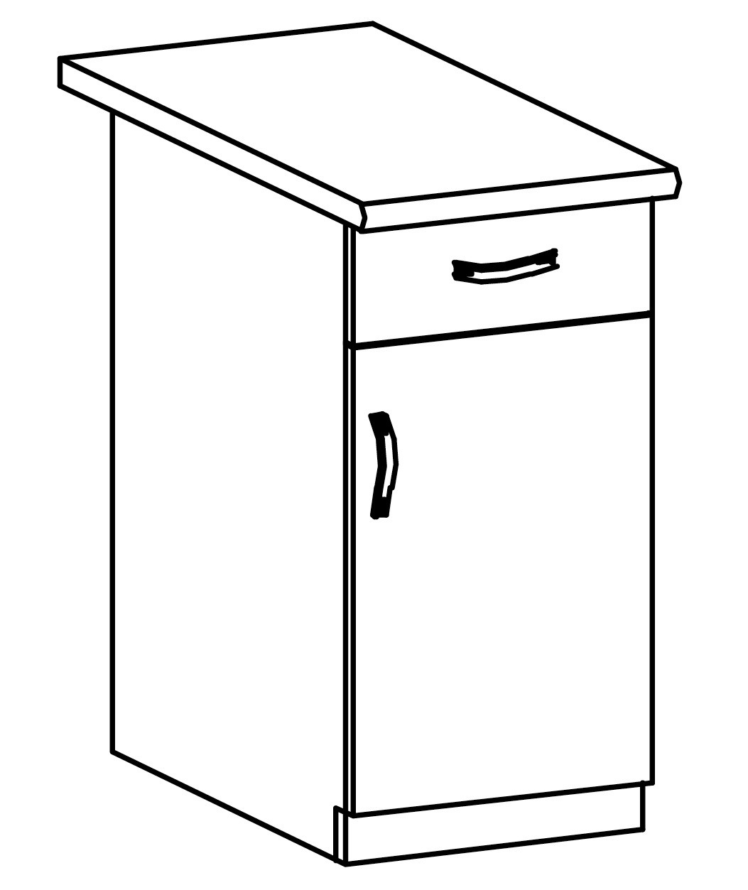 Kuchynská dolná skrinka ASPEN D40S1 pravá, šedá/biely lesk