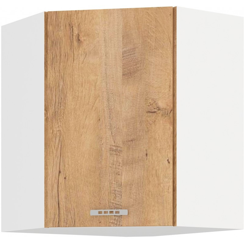 Horná rohová kuchynská skrinka Sally 58x58GN je vyrobená z bieleho lamina s hrúbkou 16 mm a dvierkami v prevedení dub lefkas. Vyberte si z našej ponuky skriniek a vytvorte si kuchyňu podľa svojich potrieb. Môže byť rohový, rovný, krátky alebo dlhý. Predstavivosti sa medze nekladú. Na ďalších fotografiách nájdete fotografie kuchýň, ktoré sú zložené z týchto skriniek, aby ste sa mohli inšpirovať. Skriňa sa dodáva v demontovanom stave. Montážny plán vrátane všetkých potrebných spojovacích prvkov je súčasťou balenia.