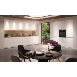 Kuchynská linka Aspen má plne výsuvné guľôčkové koľajničky so samozatváracím systémom, závesy dvierok majú systém tichého zatvárania.