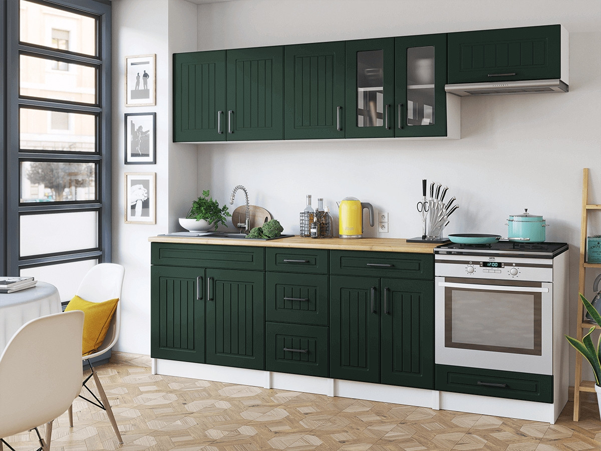 Kuchynská linka Běla 240/240 tmavo zelená MAT