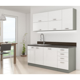 Kuchyňská linka BIANCA 180 cm, Šedá / Bílý lesk
