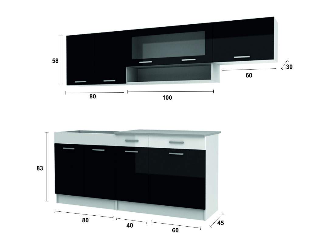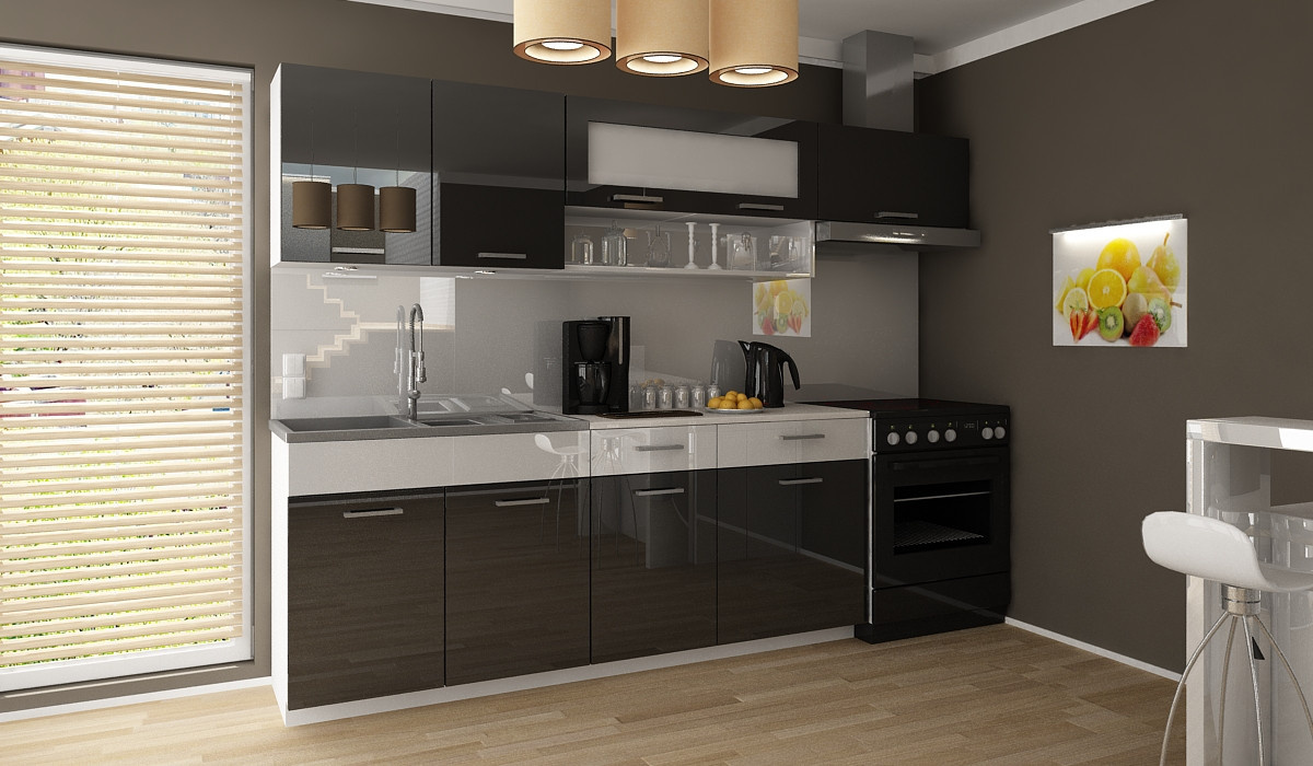 Kuchynská linka Dolomiti 180/240 čierny lesk/biely pruh