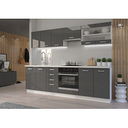 Kuchyňská linka SOLA - 2,6 m, Bílá/Šedý Lesk