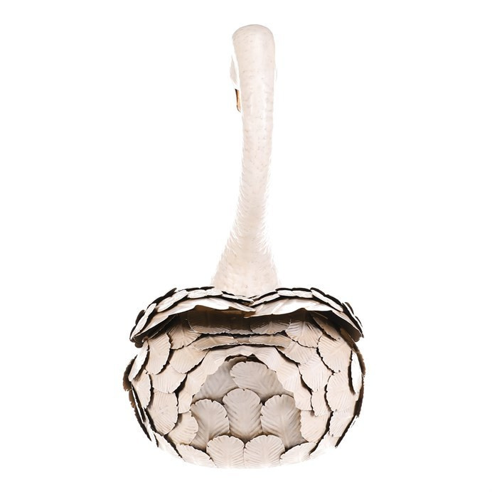Zahradní dekorace ve tvaru labutě je vyrobena z kovu v bílém odstínu, který vytváří jemný a přirozený vizuální efekt. Detailní zpracování peří a elegantní zakřivení krku dodávají dekoraci realistický vzhled. Velikost L umožňuje výrazné umístění v zahradě, na terase nebo v interiéru. Dekorace je určena k postavení a díky pevnému kovovému provedení je stabilní a vhodná pro dlouhodobé venkovní použití. Vynikne jako stylový doplněk, který přináší klidnou atmosféru a přírodní motiv do prostoru.