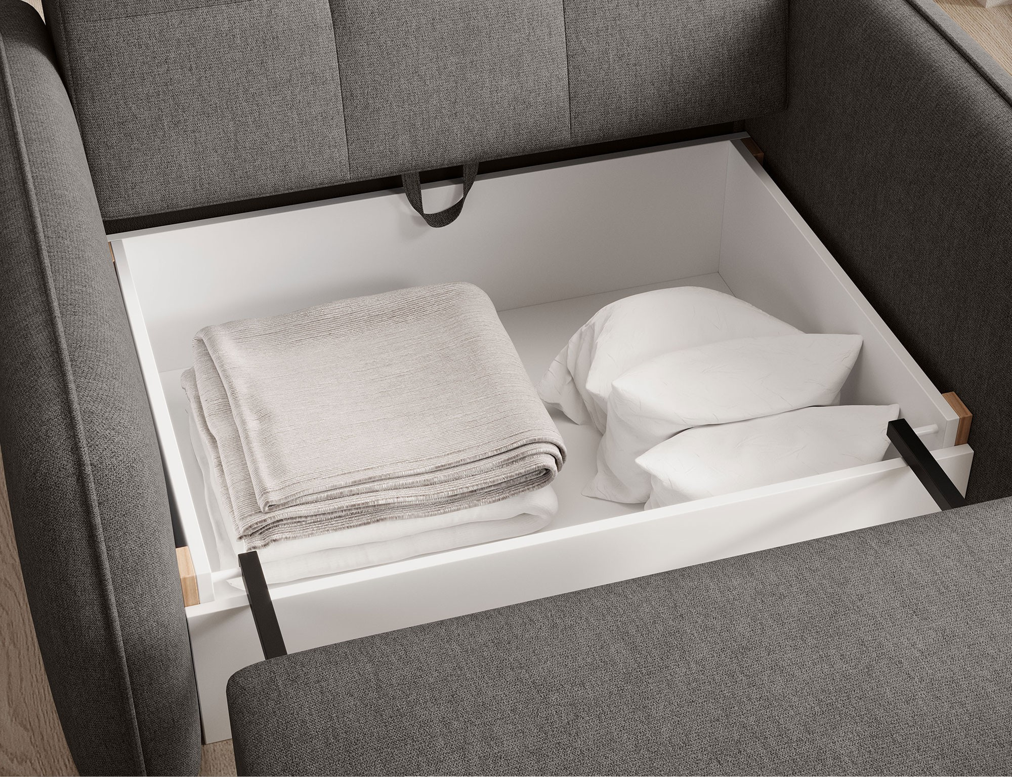 Pohovka Laine pre jednu osobu je kompaktný a funkčný kus nábytku, ideálny pre menšie priestory alebo ako ďalšia možnosť sedenia a spania. Jeho rozmery sú 102x109x84 cm, čo z neho robí elegantné riešenie, ktoré nezaberá veľa miesta. Sedák pohovky je vyplnený penou T25, ktorá sa vyznačuje strednou tvrdosťou, čo robí pohovku pohodlnou ako pre každodenný odpočinok, tak pre príležitostné spanie. Ďalšou výhodou pohovky Laine je funkcia spania. Keď je rozložený, tento kus nábytku sa premení na pohodlnú posteľ, čo z neho robí ideálne riešenie pre nečakaných hostí alebo obmedzený priestor pre trvalú posteľ. Dizajn pohovky je moderný a štýlový, čo jej umožňuje zapadnúť do rôznych interiérových usporiadaní.