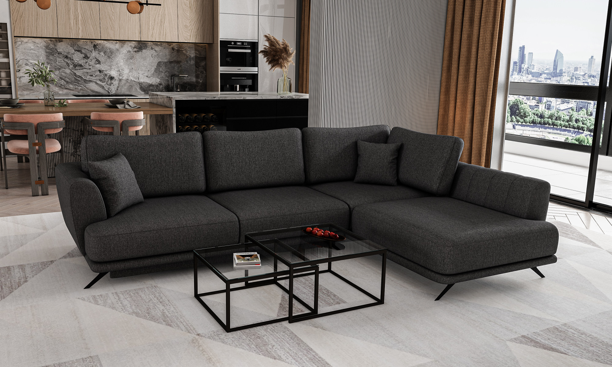 Larde je výnimočne útulná, napriek tomu pohodlná a elegantná rohová pohovka v tvare L, merajúca 276 x 191 x 90 cm. Jeho charakteristické rysy zahŕňajú: stabilnú konštrukciu, tlmený, ale zaujímavý dizajn, čalúnené operadlo, veľké vankúše, štýlové nohy, ktoré dodávajú celej štruktúre ľahkosť, a hlboké, mäkké sedadlo vyrobené z HR peny. Zaručujú tiež správnu polohu tela pri odpočinku a značné pohodlie. Rohová pohovka Larde je multifunkčný kus nábytku, pretože poskytuje maximálnu úroveň pohodlia ako počas dňa, tak aj v noci. Po rozložení pohovky pomocou intuitívneho a jednoduchého mechanizmu DL získame spaciu plochu s rozmermi 126 x 240 cm a priestranný úložný priestor na posteľnú bielizeň. Larde je kus nábytku, ktorý bude odpoveďou na všetky vaše požiadavky. Má všetko, čo potrebujete na dosiahnutie odpočinku na najvyššej úrovni. Pozývame vás, aby ste sa pozreli na našu ponuku.