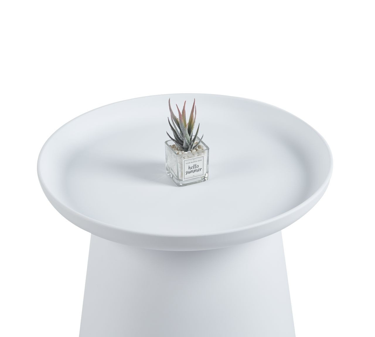 Rozmery: - doska: priemer 50 cm - výška: 45 cm Materiál: - doska + základňa: materiál PP Farba: - biela