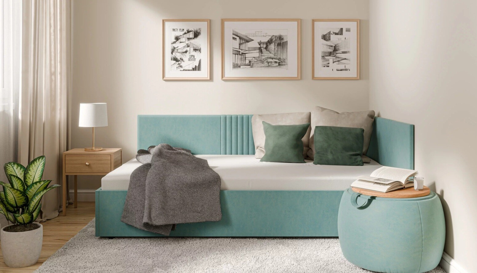 Posteľ LENA je vyrobená z kvalitnej látky, ktorá nielenže vyzerá skvele, ale taktiež zaisťuje dlhú životnosť a jednoduchú údržbu. Jej elegantný dizajn sa hodí do každého interiéru a dodá vašej spálni nádych luxusu. So šírkou 125 cm a dĺžkou 208,5 cm poskytuje dostatok priestoru na pohodlný spánok.