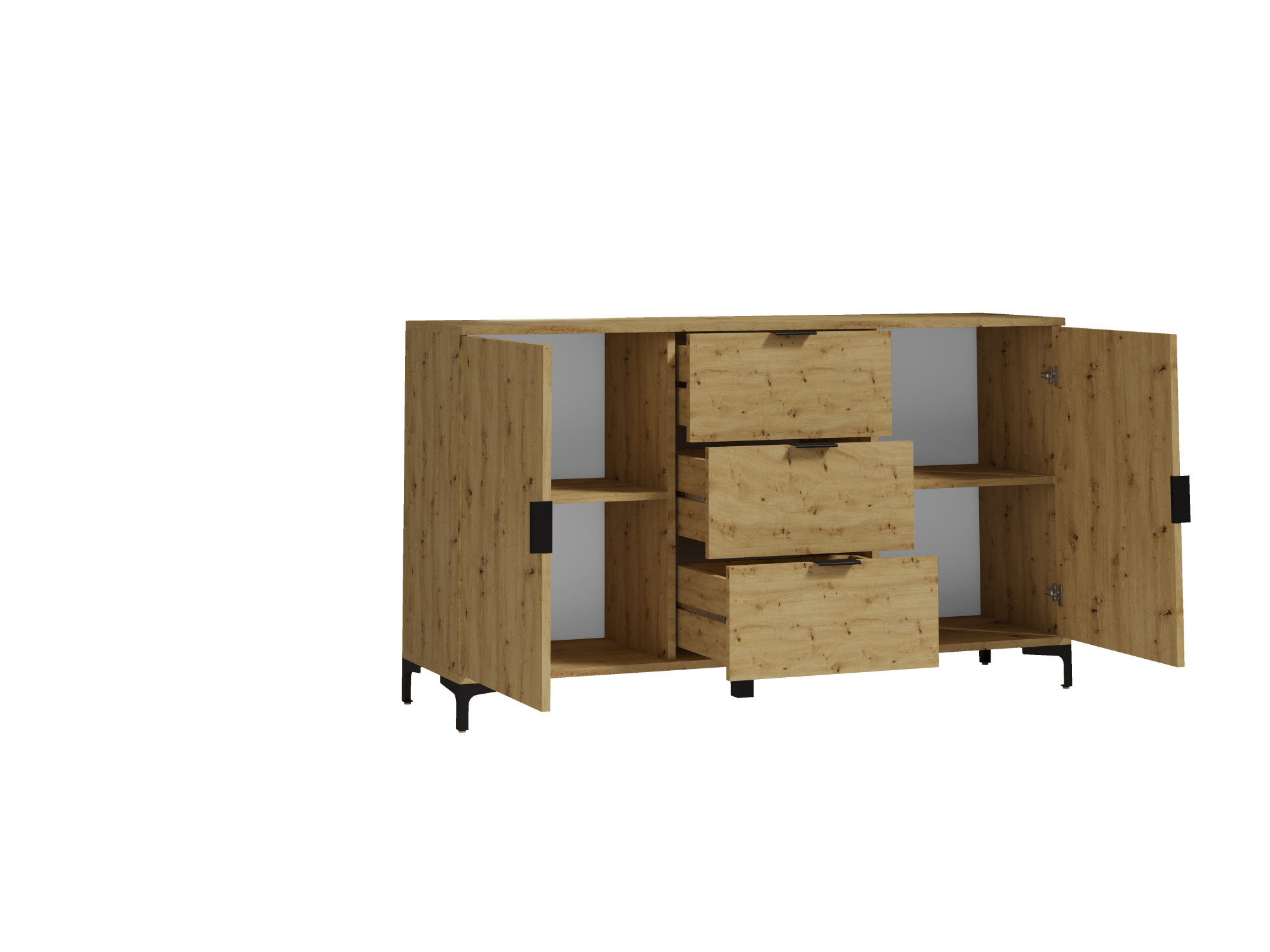 Komoda z kolekcie LENEA je skvelou voľbou do obývacej izby, spálne alebo predsiene. Nábytok má dvierka a zásuvky, čo z neho robí pohodlné miesto na ukladanie. Kolekcia LENEA sa určite hodí do väčšiny aranžmánov, dodávajúc miestnosti moderný a elegantný dizajn.