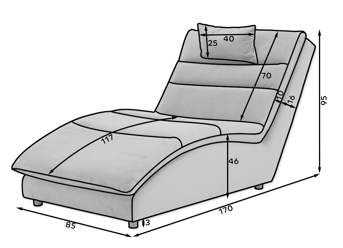 Lehátko Taco od ELTAP je ideálnym prvkom pre výzdobu obývacej izby, spálne alebo kancelárie. Jeho krásne čalúnenie je zdobené horizontálnym prešívaním, ktoré dodáva charakter celému tomuto kusu nábytku. Zdôrazňuje tiež svoj moderný minimalistický dizajn. Ďalší vankúš na miesto pre opretie hlavy je prvok, ktorý pridáva ešte väčšie pohodlie pri odpočinku na lehátku Taco. Hlavným prvkom zodpovedným za útulnosť Taca je jeho náplň vo forme vysoko flexibilnej HR peny. Okrem svojej vysokej elasticity a poskytovania dostatočnej podpory pre telo tiež HR pena predlžuje životnosť kusu nábytku. Táto leňoška o rozmeroch 85x170x95 cm má elegantne zakrivené operadlo. Umožňuje vám pohodlne odpočívať a relaxovať, a zároveň dodáva nádherný, exkluzívny vzhľad akémukoľvek typu dekoru.