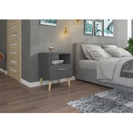 Nočný stolík LOGAN je nábytok určený do spálne alebo detskej izby. Je vybavená priestrannou zásuvkou, ktorá je ideálnym miestom na uloženie vašich drobností. Jej moderný dizajn zaisťuje, že sa skrinka hodí do každého interiéru.