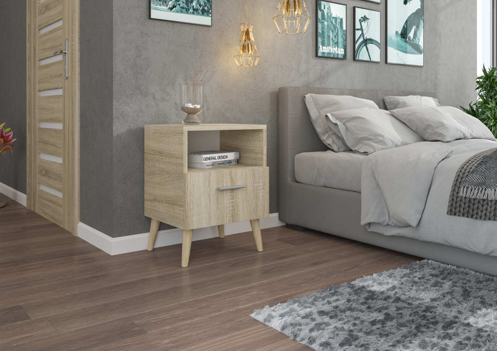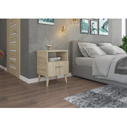 Nočný stolík LOGAN je nábytok určený do spálne alebo detskej izby. Je vybavená priestrannou zásuvkou, ktorá je ideálnym miestom na uloženie vašich drobností. Jej moderný dizajn zaisťuje, že sa skrinka hodí do každého interiéru.