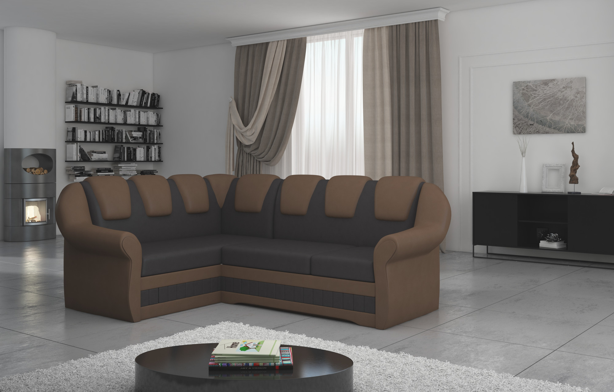 Lord II je pohodlná a klasická rohová pohovka, ktorá zároveň predstavuje výraznú a funkčnú dekoráciu obývacej izby. Zaujímavý tvar bloku bol narušený vlnitým zakončením, štýlovým prešívaním operadiel a záhybmi pozdĺž nábytku. Rozmery rohovej pohovky 243 x 190 x 105 cm poskytujú dostatok priestoru na relaxáciu kedykoľvek počas dňa alebo noci. Tento nábytok je vybaven funkciou spania s rozmermi 195 x 125 cm a tiež priestranným a hlbokým úložným priestorom na posteľnú bielizeň umiestneným v otomane. Vďaka funkcii rozkladania typu delfín je prispôsobenie nábytku vašim aktuálnym potrebám intuitívne a jednoduché. Vďaka použitiu kombinácie vlnitej pružiny a peny T30 je sedák rohovej pohovky mäkký a pružný. Rohová sedačka Lord je kombináciou dobrého vkusu, štýlu a klasických foriem dokončenia. Bude to určite vhodná voľba pre tradičné úpravy bytu.