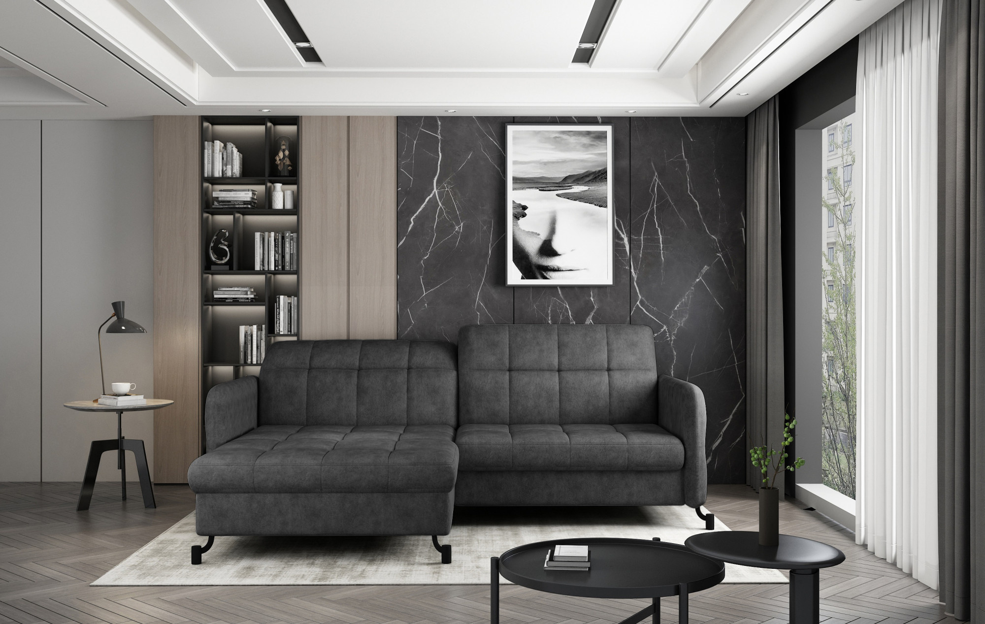 Lorelle je štýlová, elegantná a moderná rohová pohovka pre dnešnú dobu, ktorá je nielen funkčným kusom nábytku, ale môže dokonale fungovať aj ako bytová dekorácia. Lorelle v tvare písmena L s rozmermi 225 x 160 x 105 cm zaručuje priestrannosť a pohodlie počas dňa a maximálne pohodlie na spánkovej ploche 200 x 110 cm v noci. Vďaka automatickému a intuitívnemu mechanizmu typu delfín je rozkladanie postele na spanie príjemné a úplne jednoduché. Výhodou tohto modelu je aj priestranný úložný priestor - miesto na lôžkoviny - umiestnený v otomane. Pozitívne pocity umocňuje spôsob vyhotovenia nábytku vďaka vlnitej pružine typu B a tiež pena HR + T25, vďaka ktorej je telo pri odpočinku stabilizované a správne podopreté. Táto kombinácia poskytuje používateľom pocit maximálneho pohodlia. Medzi charakteristické znaky tohto modelu môžeme určite zaradiť starostlivé, moderné spracovanie, široký výber farieb a originálne, štýlové čierne nohy nepravidelného tvaru. Ak hľadáte závan čerstvého vzduchu a zaujímavý, elegantný dizajn - Lorello bude pre vás určite ideálny. Takéto riešenie sa oplatí použiť aj vo vašom byte.
