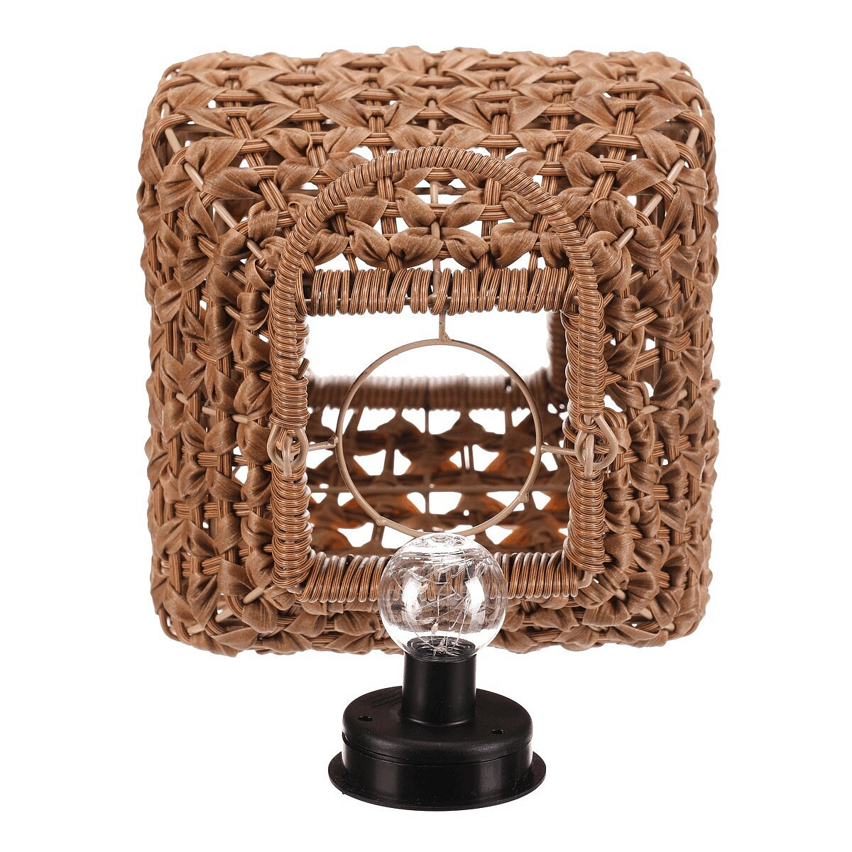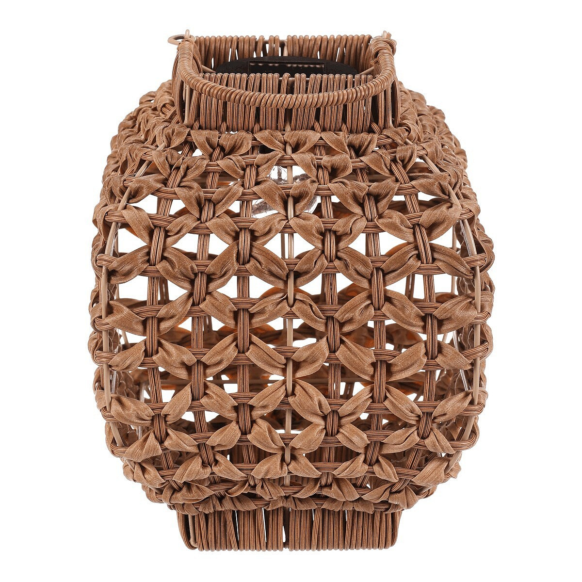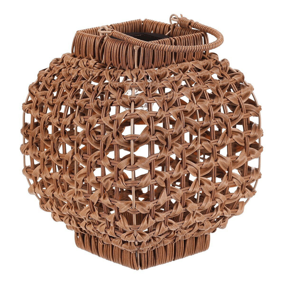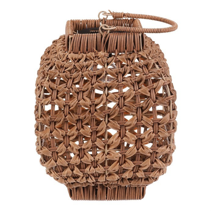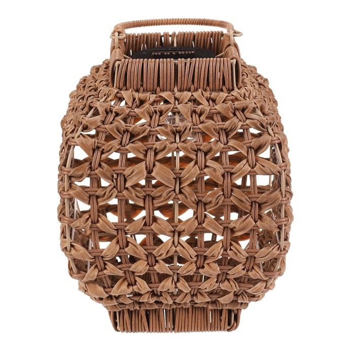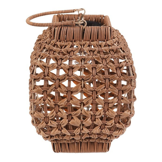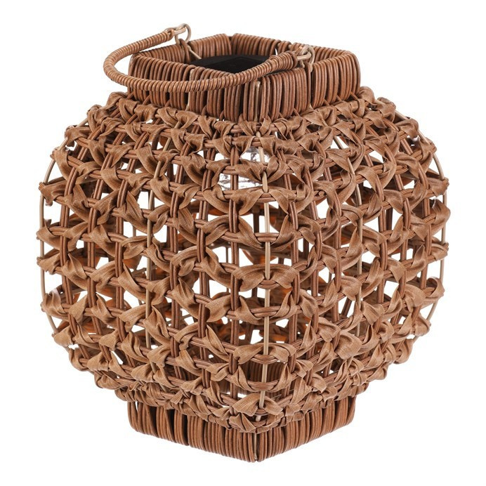 Lampión z polyratanu v světle hnědém odstínu nabízí zajímavé prostorové provedení s otevřenou strukturou, která vytváří příjemný světelný efekt díky integrovanému LED osvětlení. Hranatý tvar a pevná rukojeť umožňují snadné přenášení i zavěšení. Polyratanové provedení je navrženo pro dlouhou životnost a snadnou údržbu, což z lampiónu činí vhodný doplněk pro interiéry i venkovní prostory. Velikost M je ideální pro umístění na stůl, terasu nebo do zahrady. LED osvětlení je napájeno 1 x AA dobíjecí baterií a zároveň solárním panelem umístěným na horní hraně.
