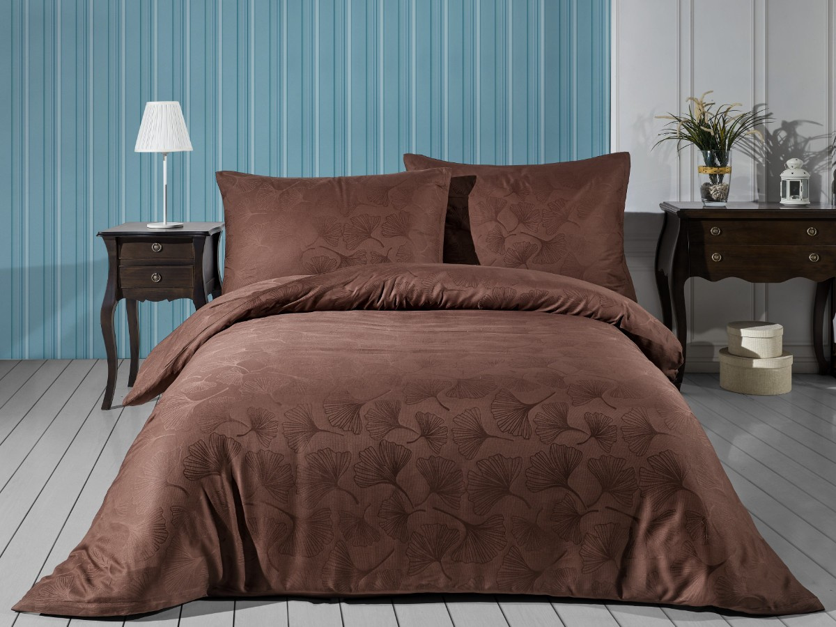 Luxusné žakárové obliečky 140x200, 70x90cm Ginkgo biloba hnedá