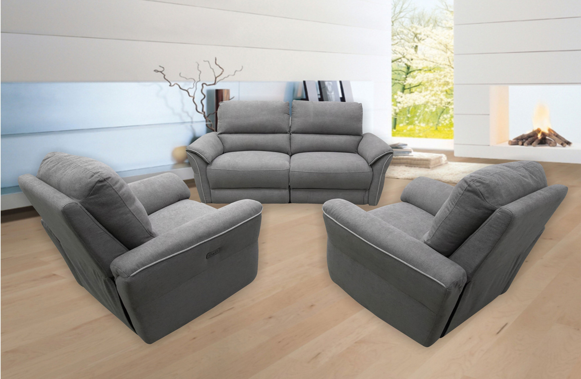 MACAU - SEDACIA SÚPRAVA 3+1+1 (50035M) AL1.5-1E+AR1.5-1E+L1-1E+L1-1E relaxačné elektrické ležadlo - látka 15875/20810# tmavo sivá (MAN) CH19