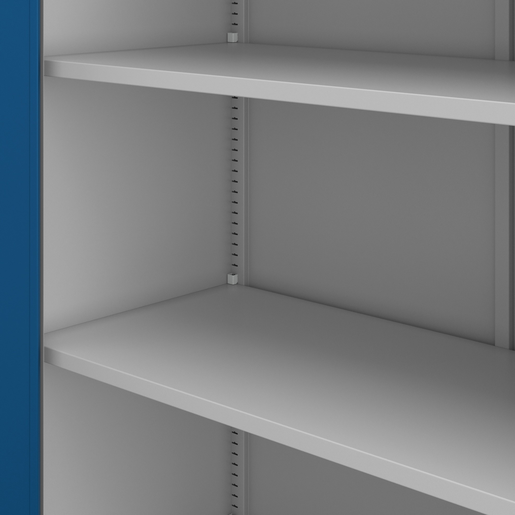 Potrebujete uložiť aj iné predmety ako dokumenty? Žiadny problém! Výšku políc možno nastaviť v krokoch po 25 mm, takže si môžete vnútorný priestor skrinky prispôsobiť presne podľa svojich požiadaviek. Vytvorte si hlavnú komoru na nástroje a dve úzke police na príslušenstvo, alebo sa úplne zbavte jednej police a získajte dve priestranné úrovne.