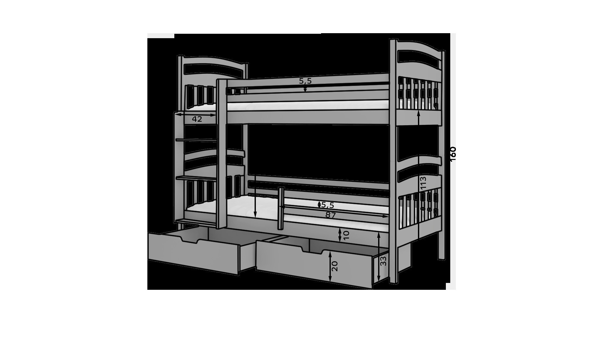 Dvojlôžková poschodová posteľ ADA 200x90 Grafit