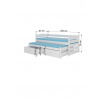 Dvojlôžko TIARRO je ideálnym riešením v izbe pre dvoch súrodencov. Dokonale sa osvedčí aj v prípade návštevy nečakaných hostí. Model je dostupný v dvoch veľkostiach a v mnohých farbách, ktoré sa hodia do každého usporiadania. Posteľ má dve praktické a funkčné zásuvky na posteľnú bielizeň a odolný a pevný rám vyrobený z borovicového dreva. Spolu s posteľou obdržíš sadu penových matracov o hrúbke 8 cm.