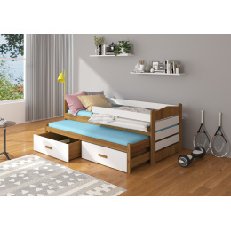 Dvojlôžko s bariérkou TIARRO je ideálnym riešením do izby pre dvoch súrodencov. Dokonale sa osvedčí aj v prípade návštevy nečakaných hostí. Model je dostupný v dvoch veľkostiach a v mnohých farbách, ktoré sa hodia do každého usporiadania. Posteľ má dve praktické a funkčné zásuvky na posteľnú bielizeň a odolný a pevný rám vyrobený z borovicového dreva. Pre zvýšenie bezpečnosti vášho dieťaťa bol model doplnený o ďalšie zábradlie chrániace pred pádom. Matrace nie sú súčasťou postele.