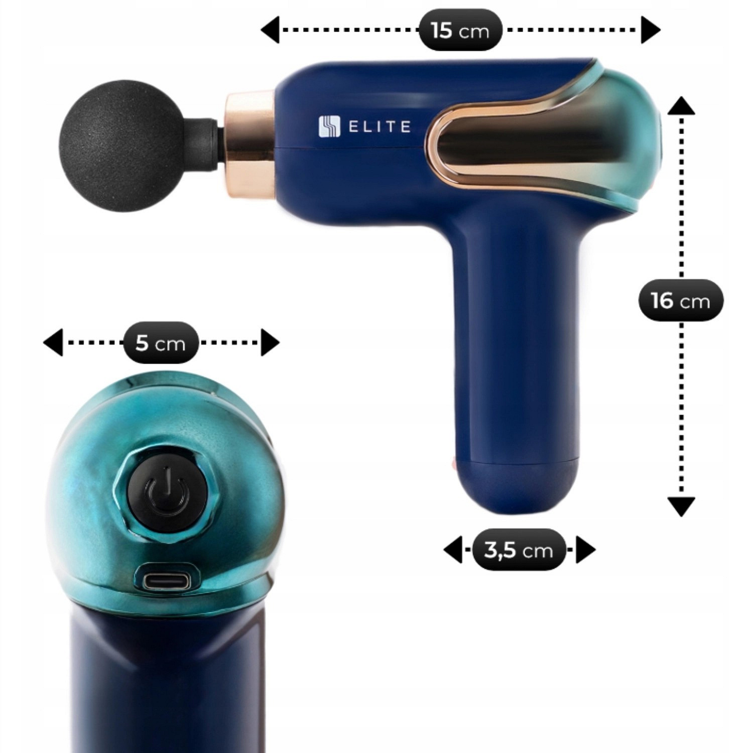 Masážna pištoľ ME-MG08 s 3 vymeniteľnými nadstavcami Modrá
