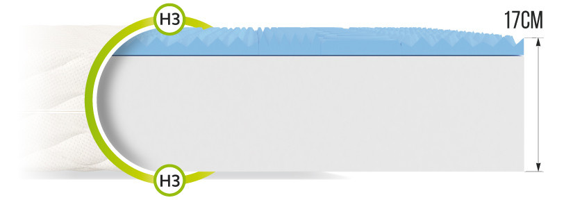 Výhodou matraca BURGOSS MAX ALOE je prvotriedna polyuretánová pena T25 so zvýšenou elasticitou. Jedinečná výplň poskytuje vynikajúcu ochranu proti plesniam a roztočom. Profilovaná 7-zónová penová vložka HR má zvýšenú tuhosť a odolnosť. V porovnaní s bežnou penou sa oveľa rýchlejšie vracia do pôvodného tvaru. Špecifikácie: tvrdosť: H3 stredne tvrdá, hrúbka: 17 cm. Zloženie: úžitková plocha: obojstranná , profilovaná pena N25: 2 cm, poťah: 1 cm, polyuretánová pena T25: 14 cm.