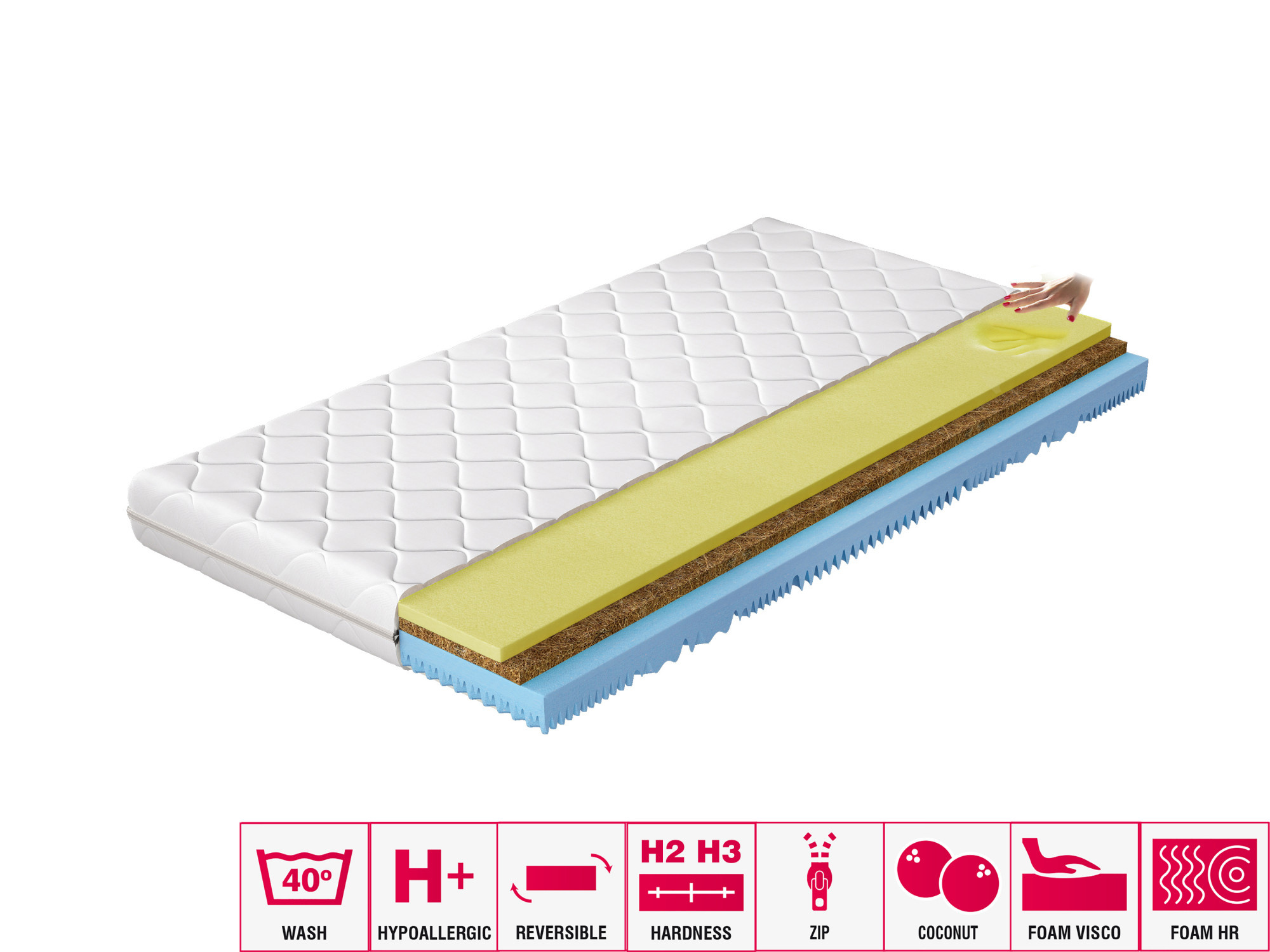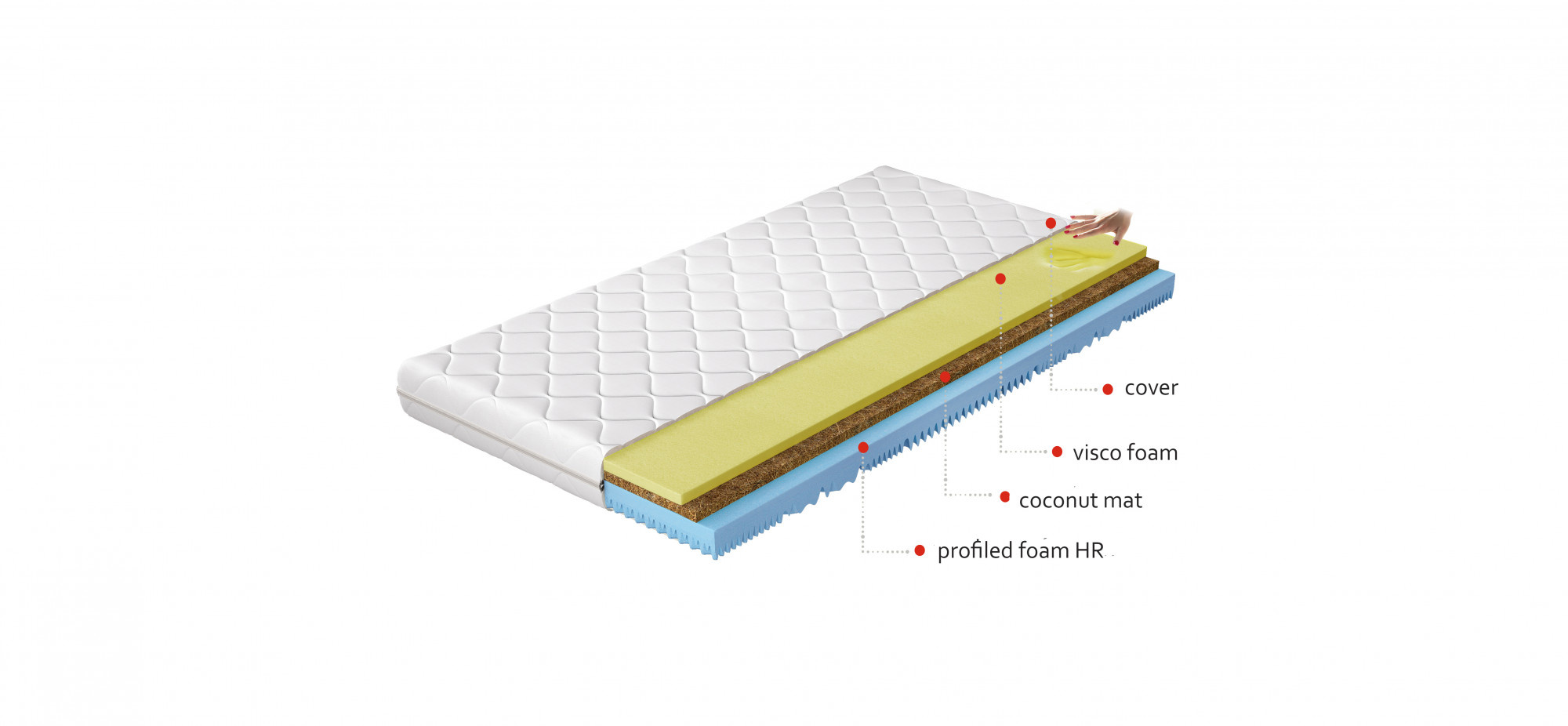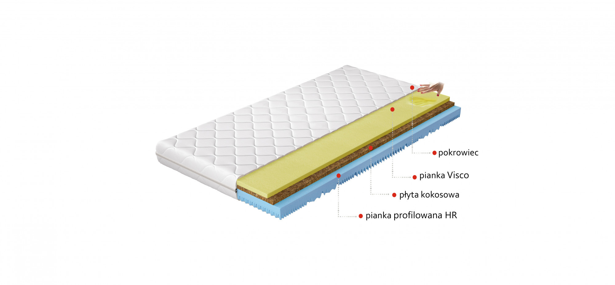 Pohodlný spánok je receptom na úspešný deň, preto si uvedomujeme, že je dôležité vybrať si matrac, ktorý dokonale vyhovuje vašim preferenciám. Termoelastický matrac Sergio je ideálnou voľbou pre tých, ktorí si cenia kvalitu spánku. Matrac Sergio sa skladá z dvoch pien: peny Visco a vysoko elastickej HR peny, vďaka ktorým je matrac mimoriadne pohodlný. Medzivrstva kokosovej dosky zvyšuje jej pevnosť. Jedinečnosť tohto matraca dotvára snímateľný poťah.