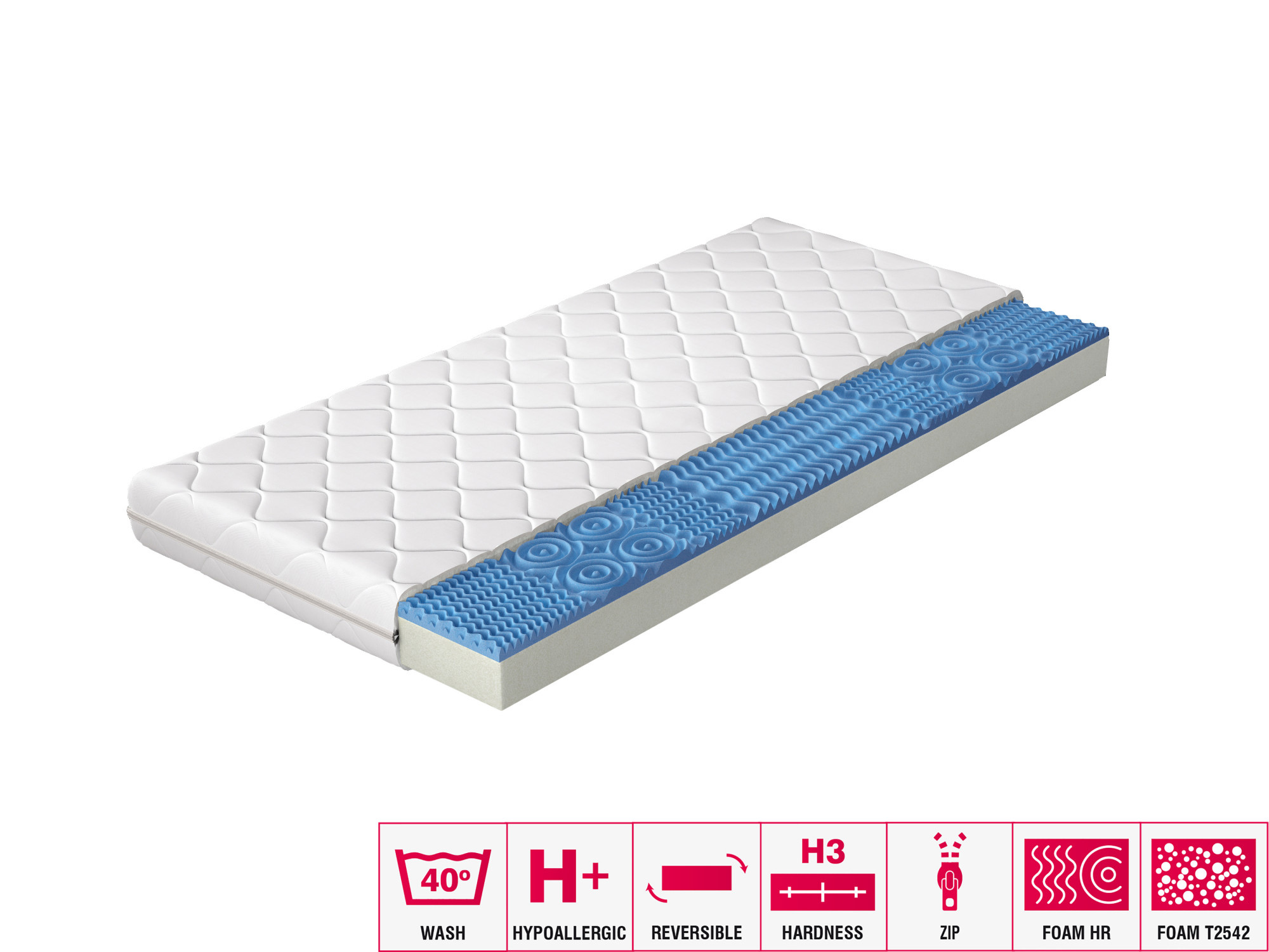 Zárukou dobrého nočného spánku je dobre zvolený matrac. Vieme, aká dôležitá je táto voľba, preto vám predstavujeme penový matrac v poťahu. Použitie vysoko elastickej HR peny je zárukou, že sa matrac počas používania nedeformuje, čo je nesmierne dôležité pre pohodlie pri spánku. Okrem toho má penová matrac Lauren silnú vrstvu peny T2542, ktorá je ešte lepšia pre pohodlie pri spánku. Matrac Lauren s odnímateľným poťahom je zárukou sladkých snov.